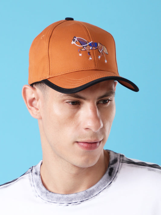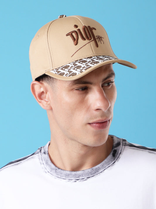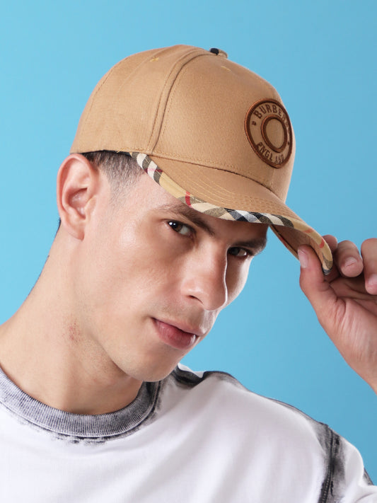 Beige Baseball Cap with Contrast Logo and Monogram Visor