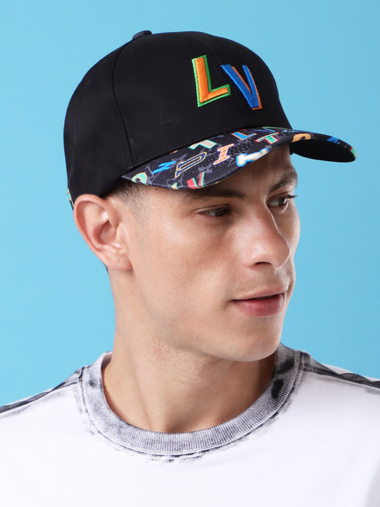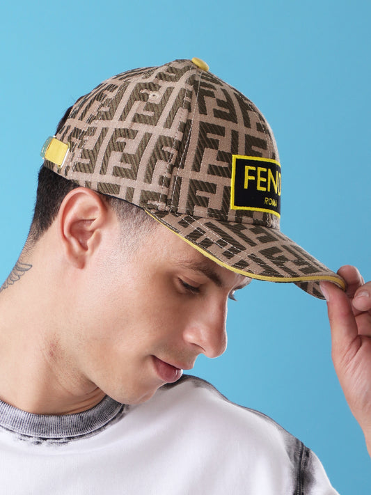 Roma Monogram Print Baseball Cap with Yellow Logo Patch