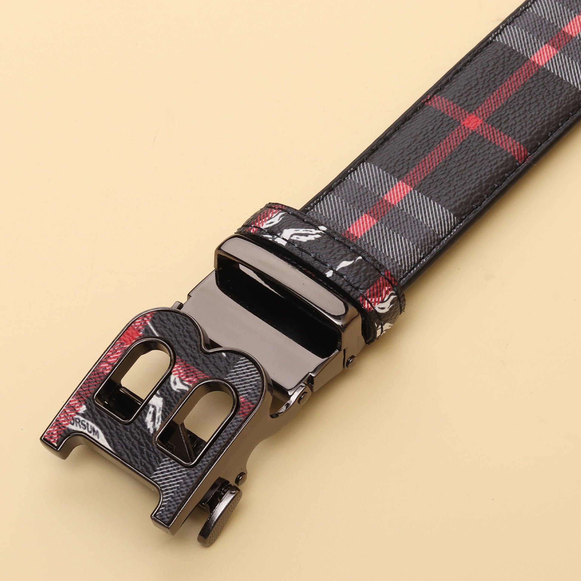 A timeless accessory crafted with Burberry’s iconic check pattern in bold black, red, and grey tones. Featuring a polished gunmetal ‘B’ buckle, this belt blends modern luxury with everyday versatility. At 51 inches, it offers a comfortable fit while making a strong style statement.
