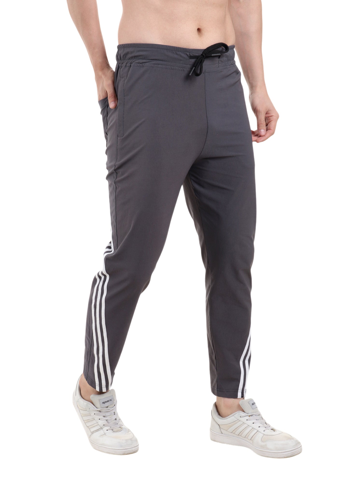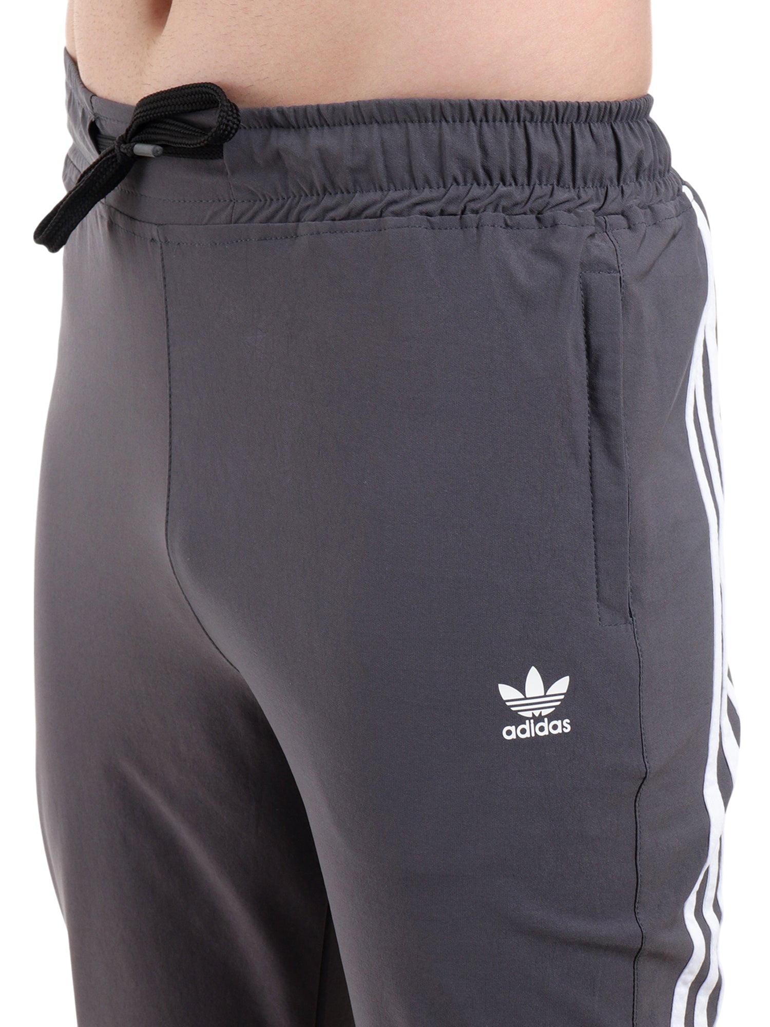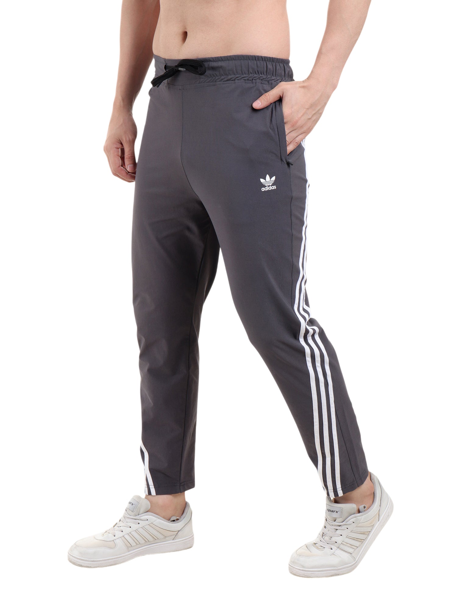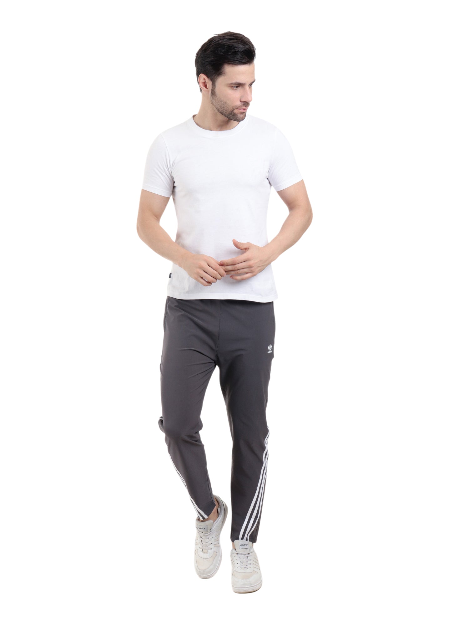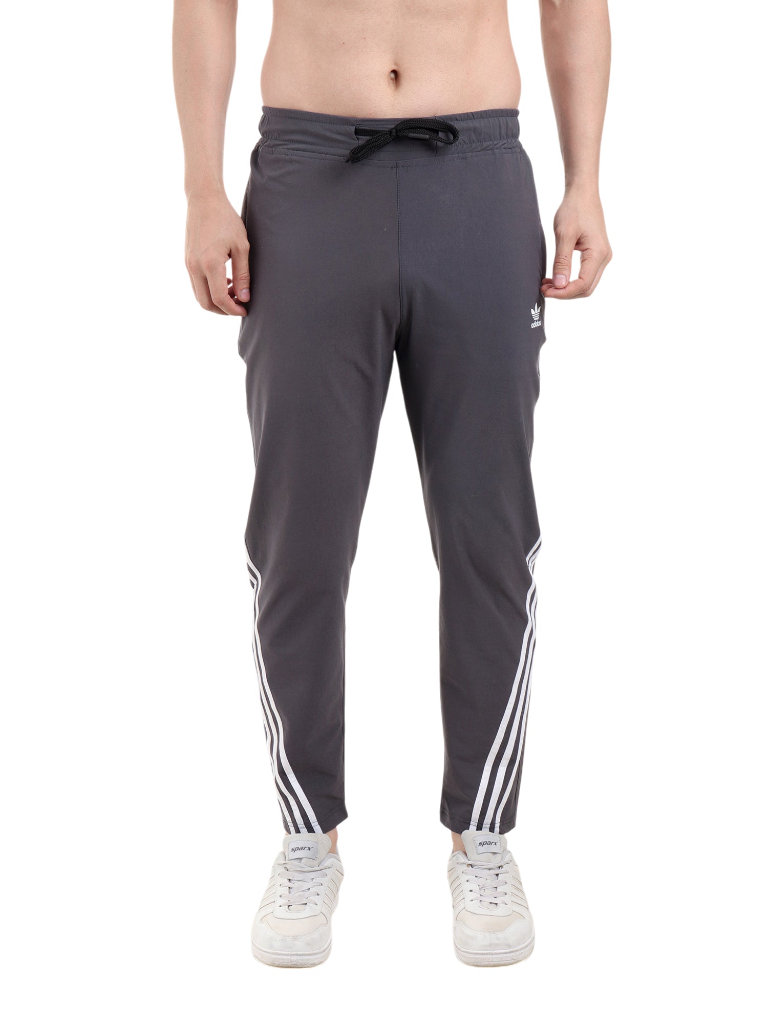 Where sporty meets sleek. These charcoal grey Adidas track pants with signature white stripes are designed for movement and made for style. The perfect blend of street-ready and gym-flex.