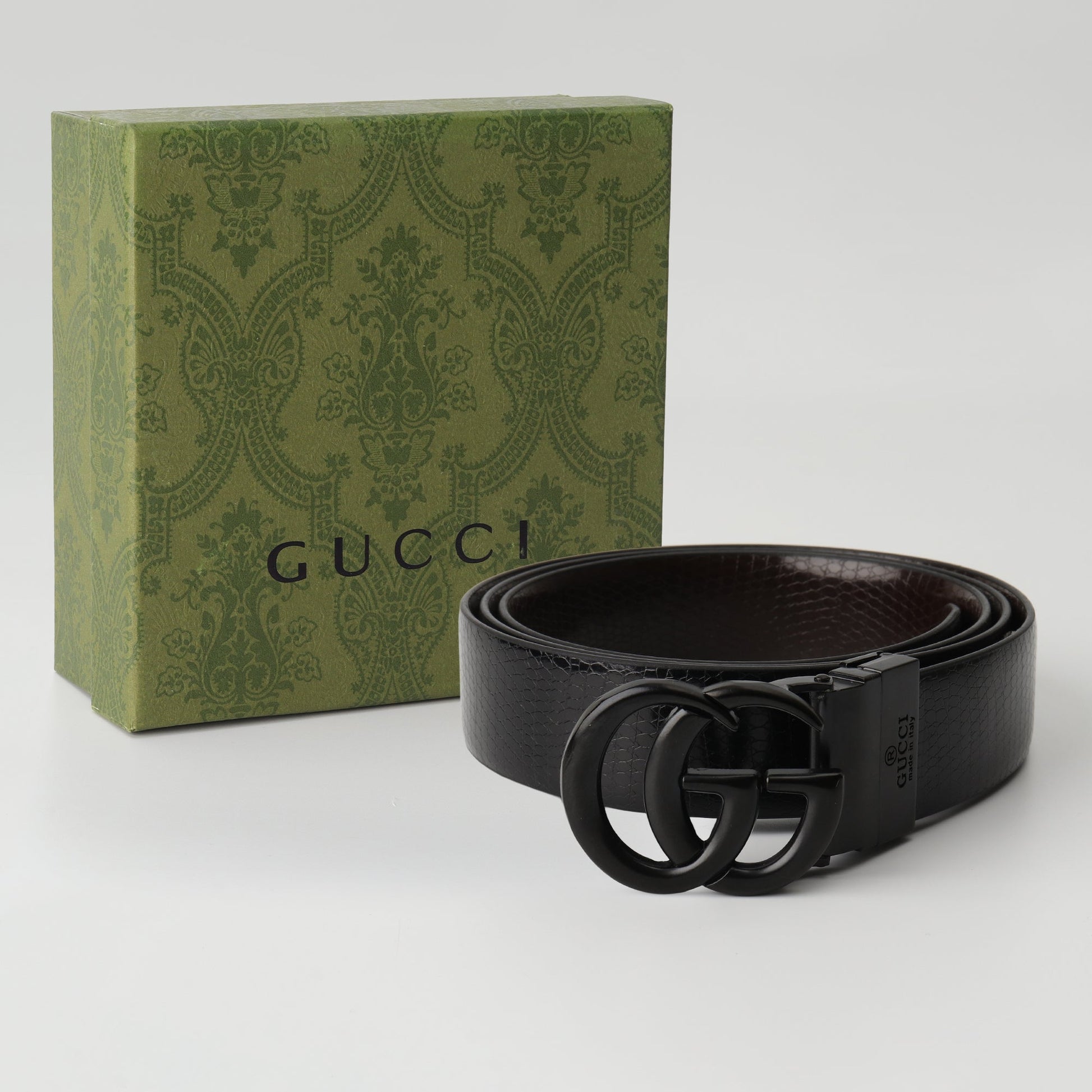 Understated and iconic, the Gucci Double G Midnight Matte Belt features a dark brown textured leather strap paired with a stealthy all-black GG buckle. Designed for the modern minimalist, it embodies subtle power and timeless fashion-forward finesse.