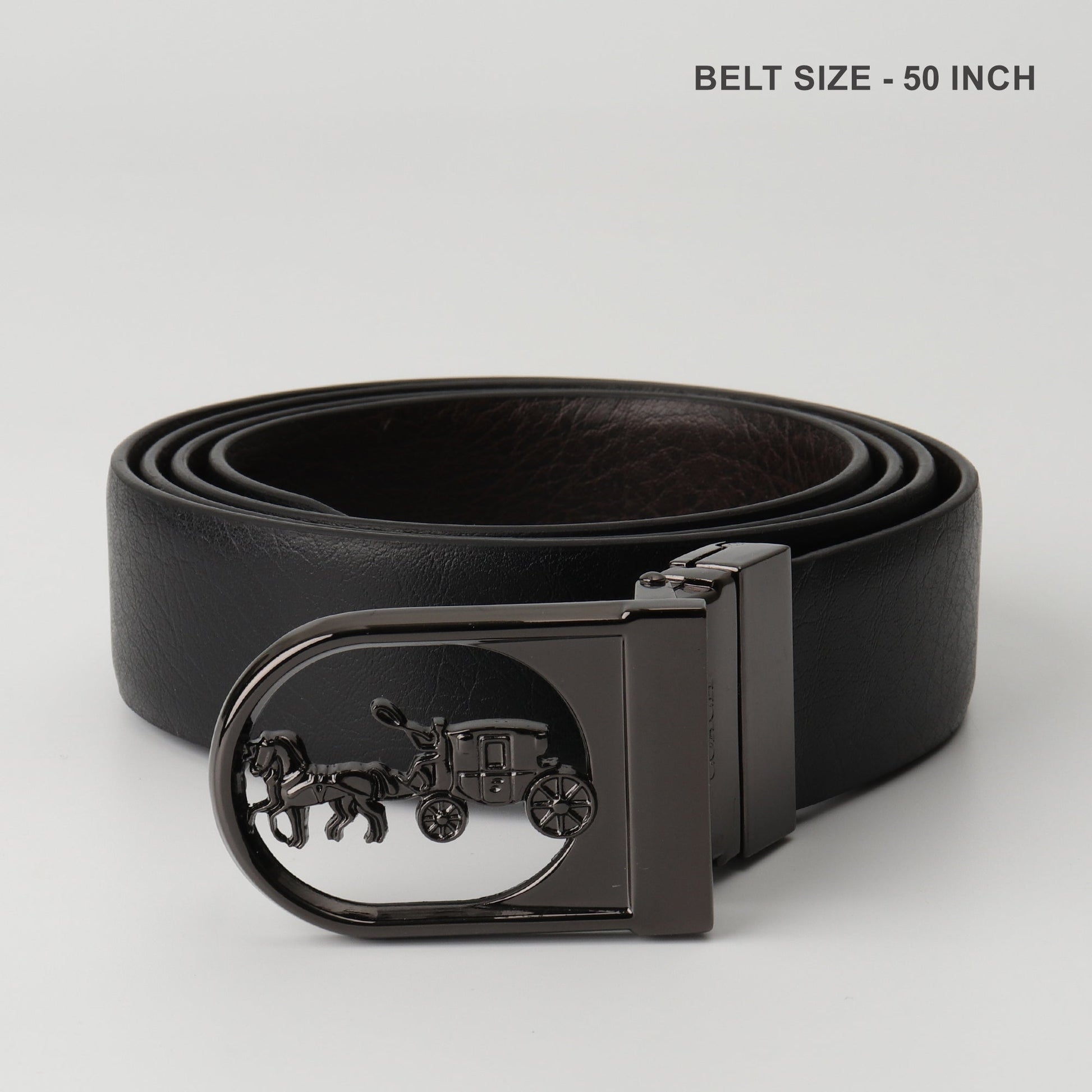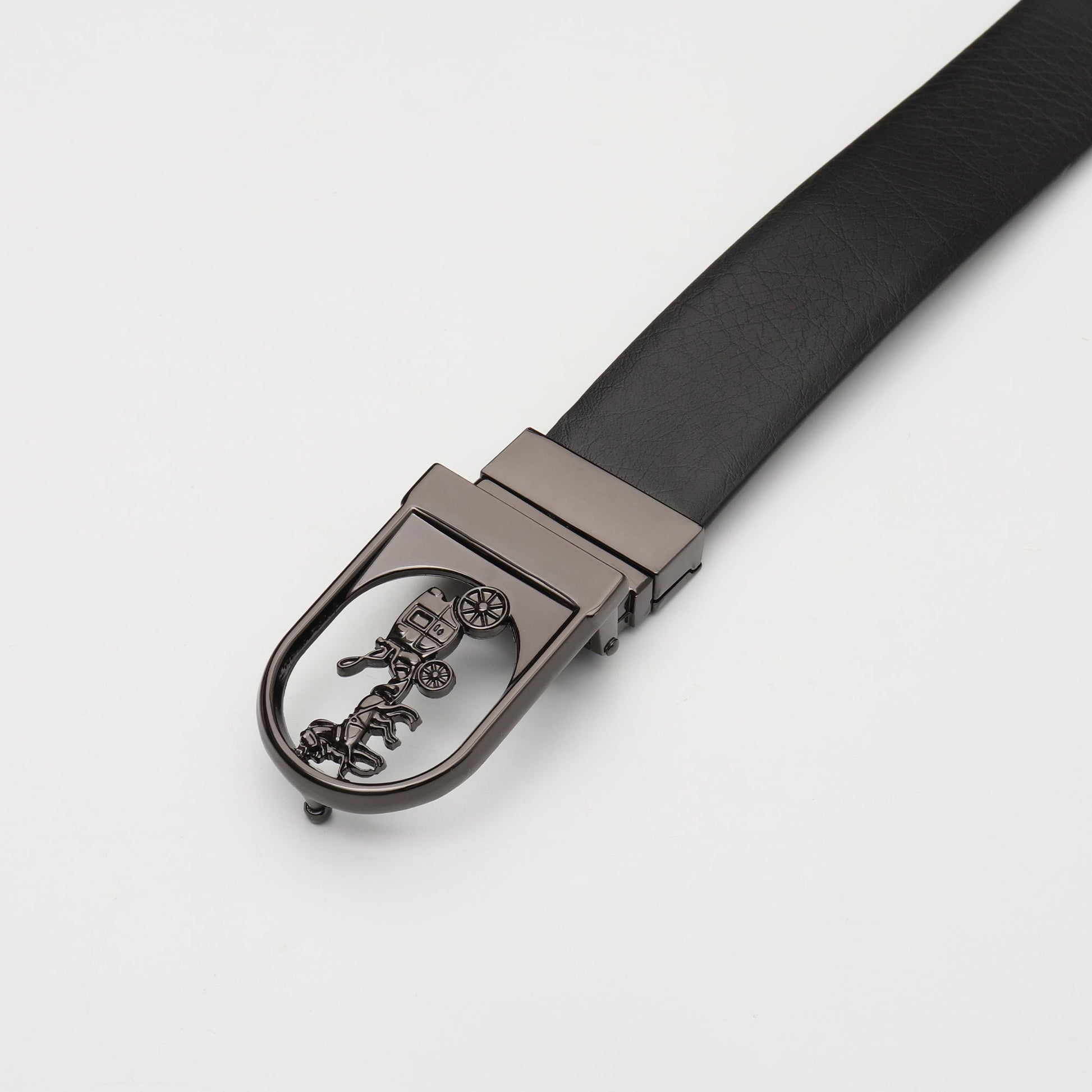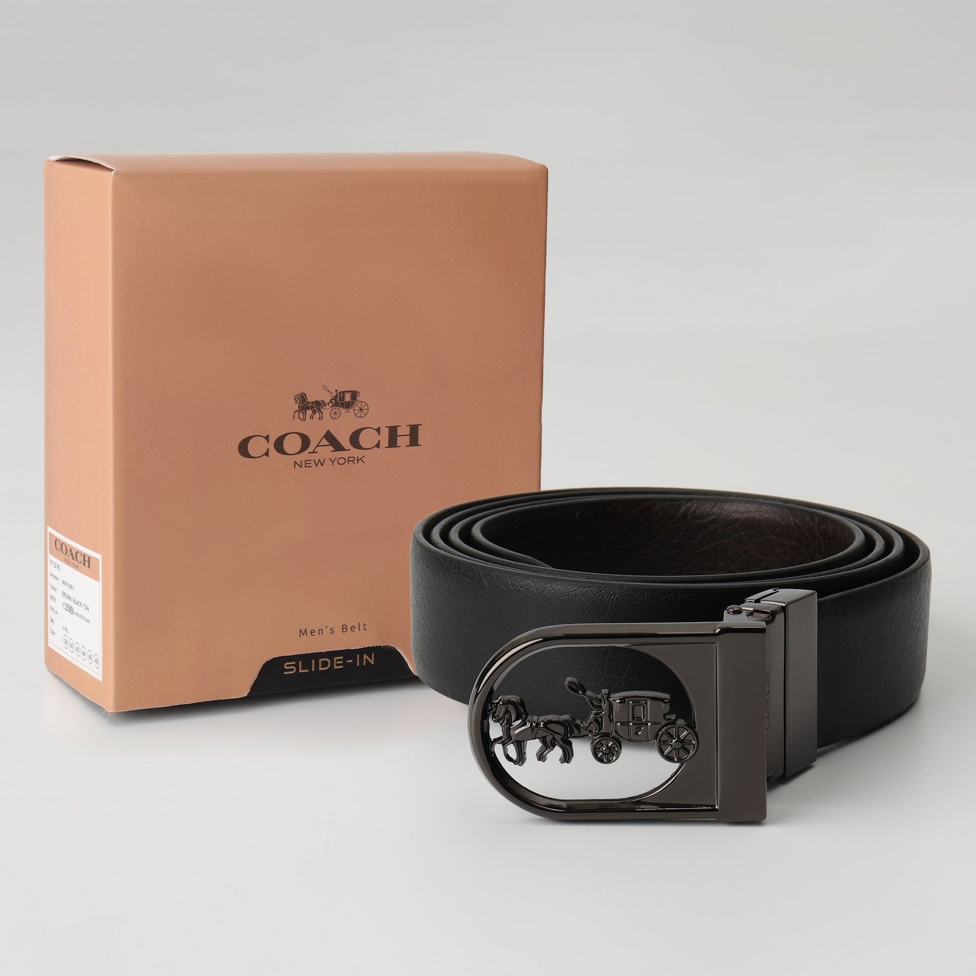 Classic Americana reimagined, the Coach Heritage Carriage Emblem Belt brings sophistication to the forefront with its signature horse-and-carriage buckle in black chrome. Set on a smooth, deep brown leather strap, this piece honors tradition while keeping things contemporary.