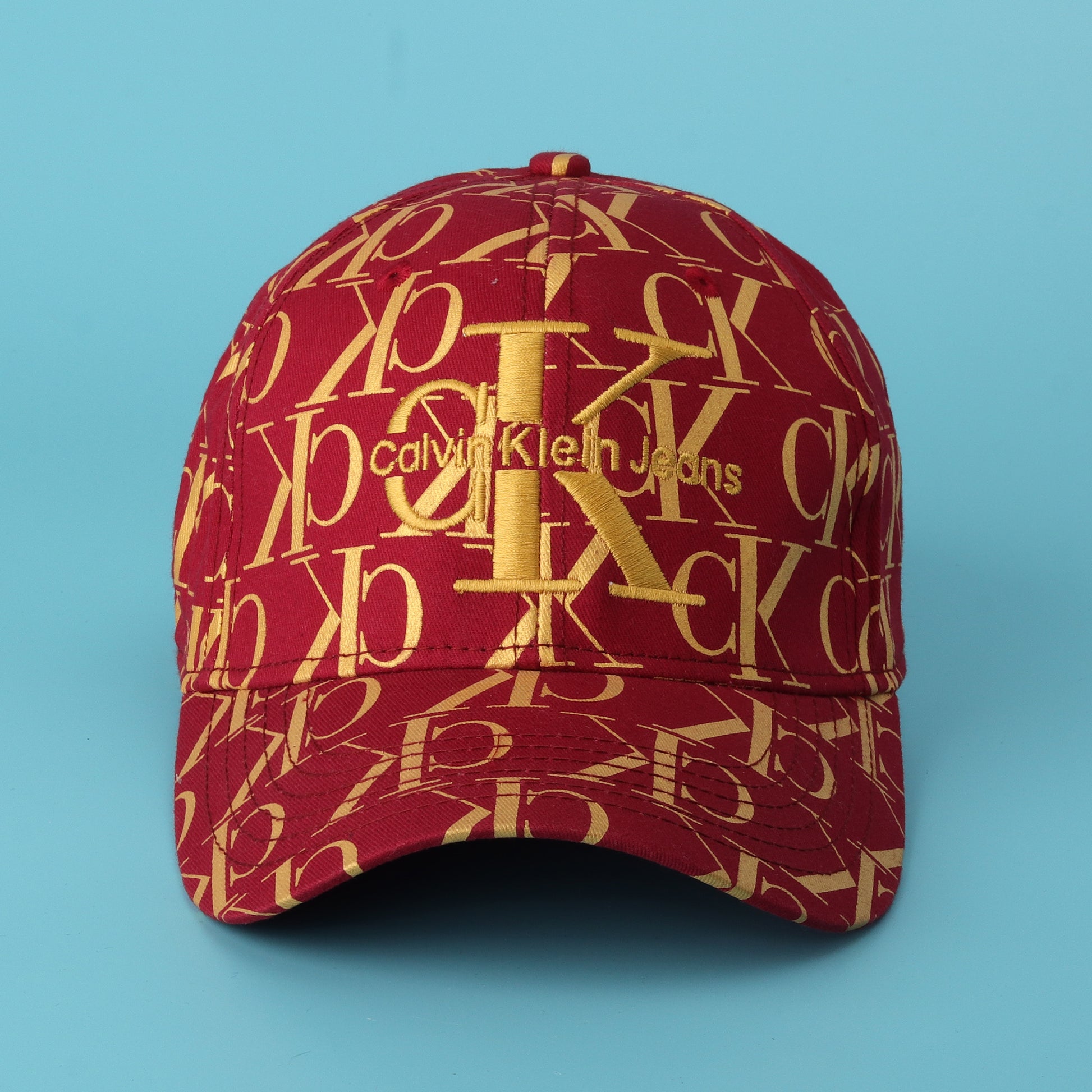 A bold mix of classic branding and modern streetwear, this Calvin Klein Jeans cap features an all-over golden CK monogram print against a rich red base. The structured crown, curved brim, and embroidered logo patch bring a premium finish to a cap that balances heritage with statement style.