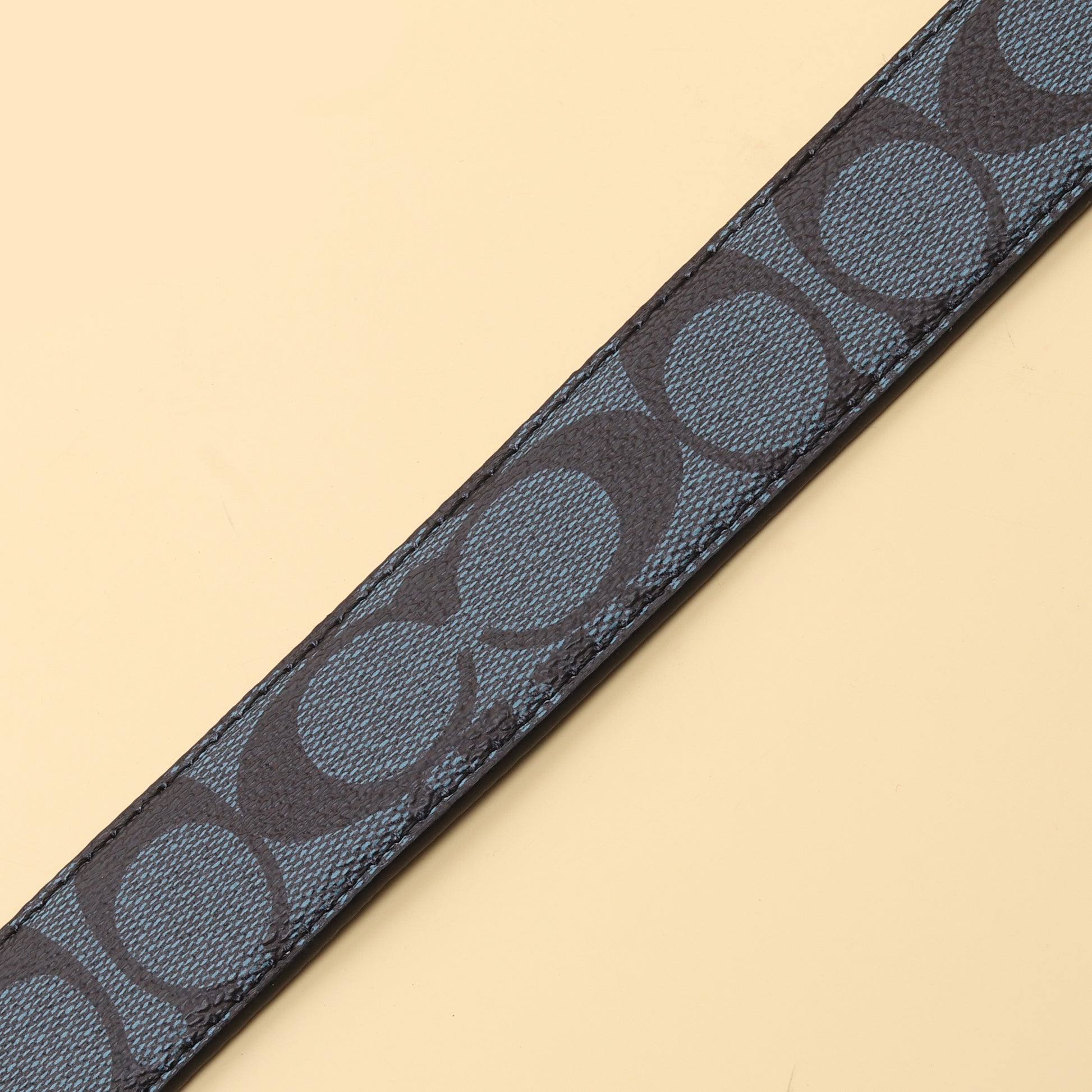 Designed with Coach’s signature pattern in dark tones, this belt is finished with a striking gold “C” buckle. The textured canvas adds a modern edge, while the polished hardware gives it a refined touch. With its 51-inch size, it offers both comfort and a bold style statement.