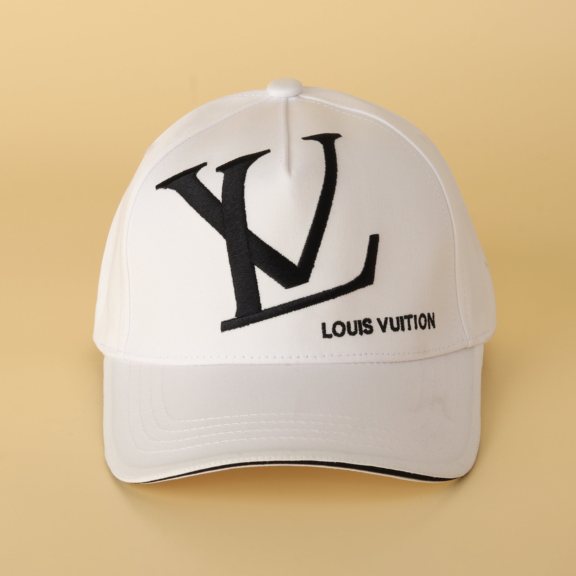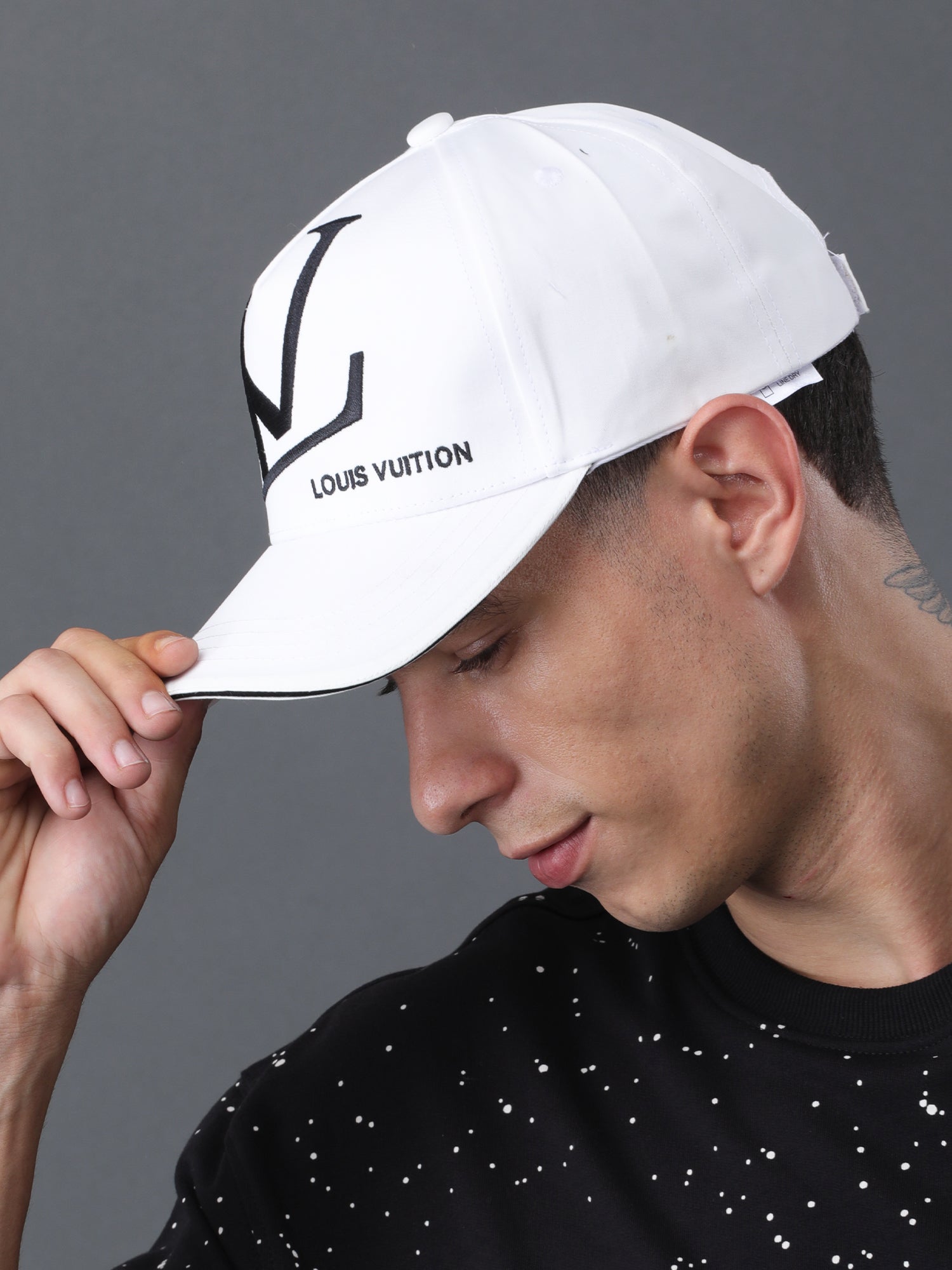 🧢 "LV Luxe Streetwear Cap – Bold, White & Iconic"