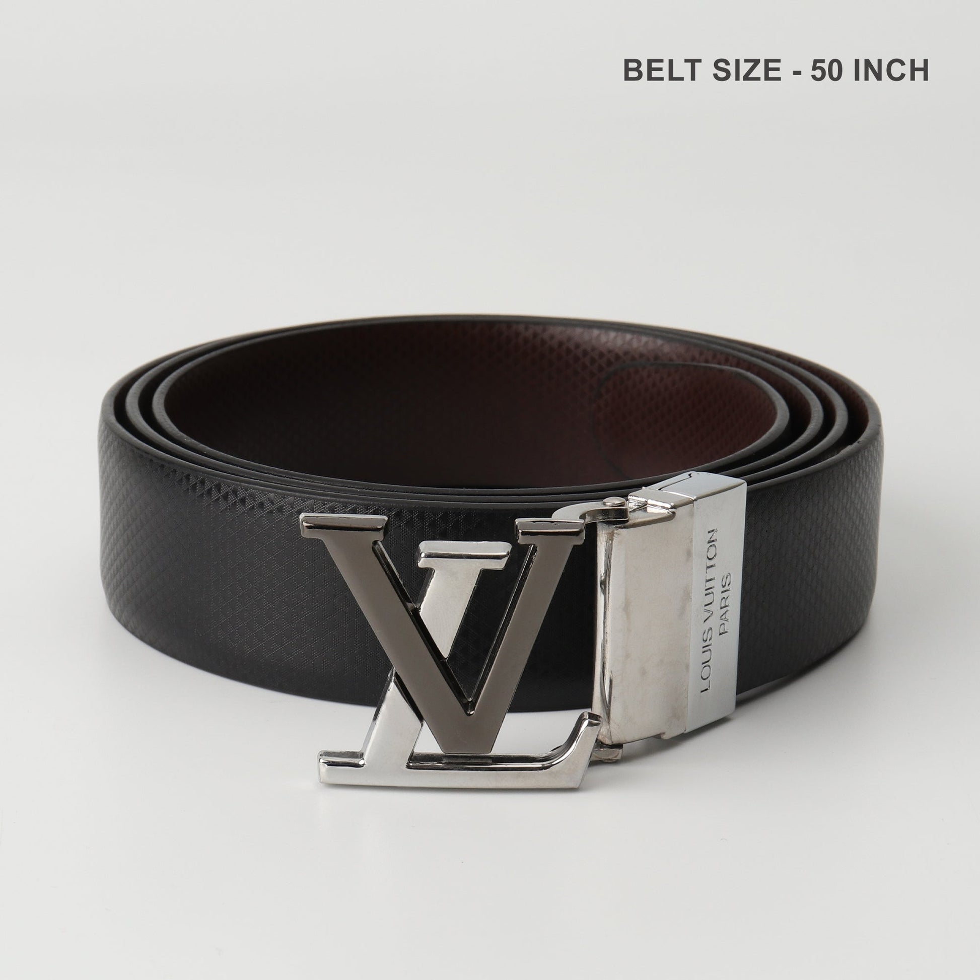 Sleek and sophisticated, the Louis Vuitton LV Initiales Polished Steel Belt pairs textured black leather with a striking silver-tone LV buckle. With its clean lines and timeless detailing, this belt speaks to the modern gentleman with a refined sense of style.