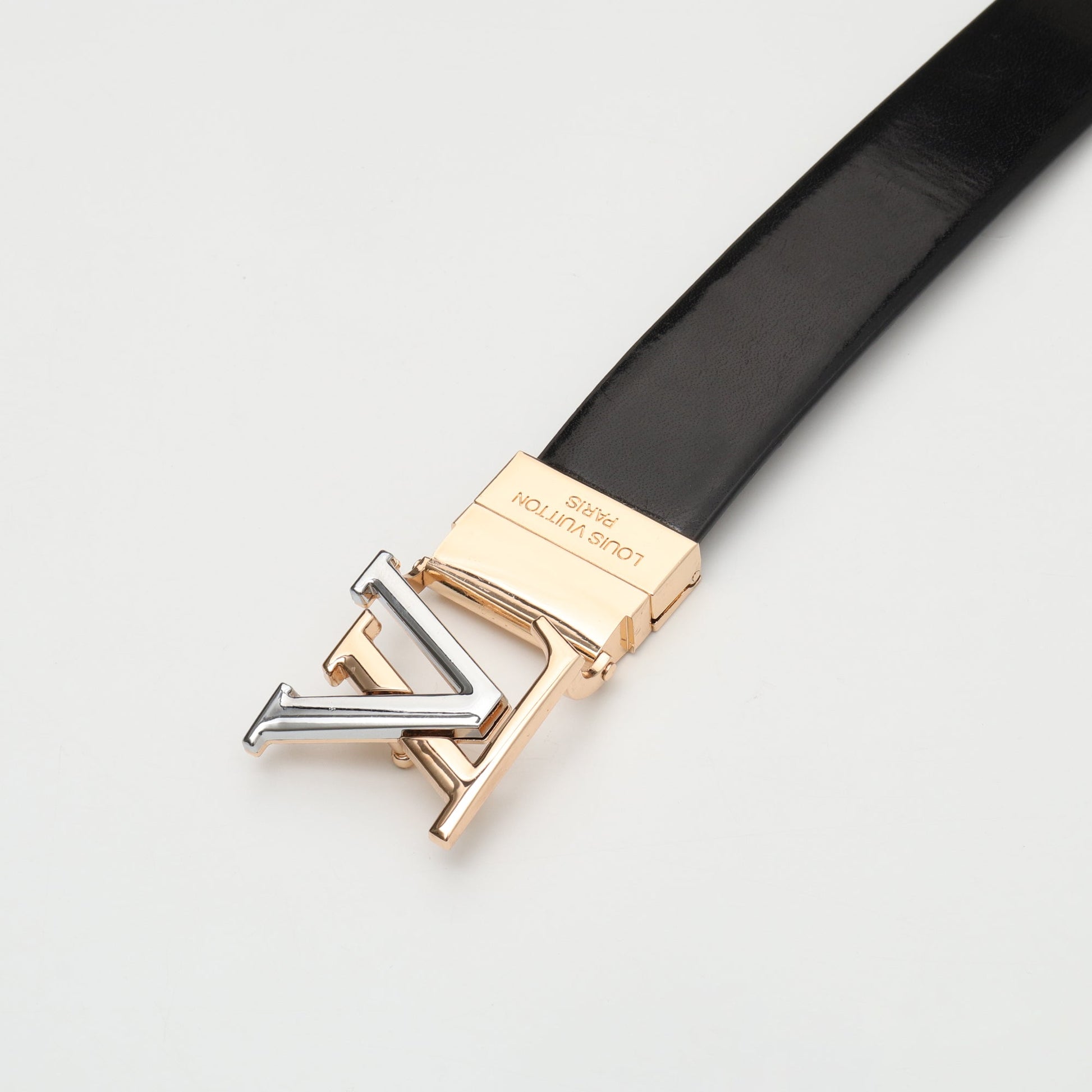 Sleek and sophisticated, the Louis Vuitton belt showcases the signature LV buckle in dual-tone metal finish with a gold clasp. Crafted in smooth black leather, it's the perfect blend of heritage craftsmanship and contemporary appeal.