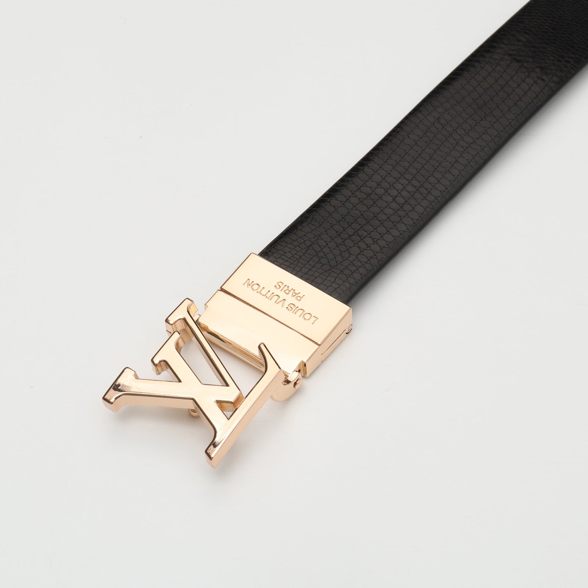 Command attention with this refined Louis Vuitton belt featuring a rose gold LV buckle against sleek black leather. Its luxurious tone-on-tone aesthetic adds instant polish to both formal and off-duty outfits.