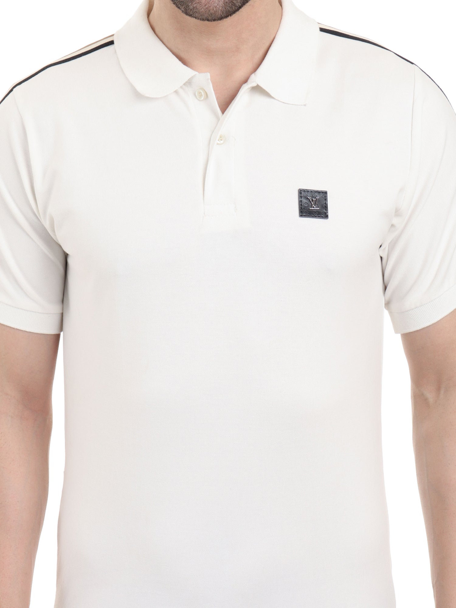Keep it crisp, clean, and quietly iconic with the Monogram Line Polo. Crafted in a sharp ivory white, this slim-fit polo features refined shoulder stripes and a luxe monogram patch on the chest. It’s the ultimate blend of sporty ease and designer elegance — made for the man who moves with quiet confidence.