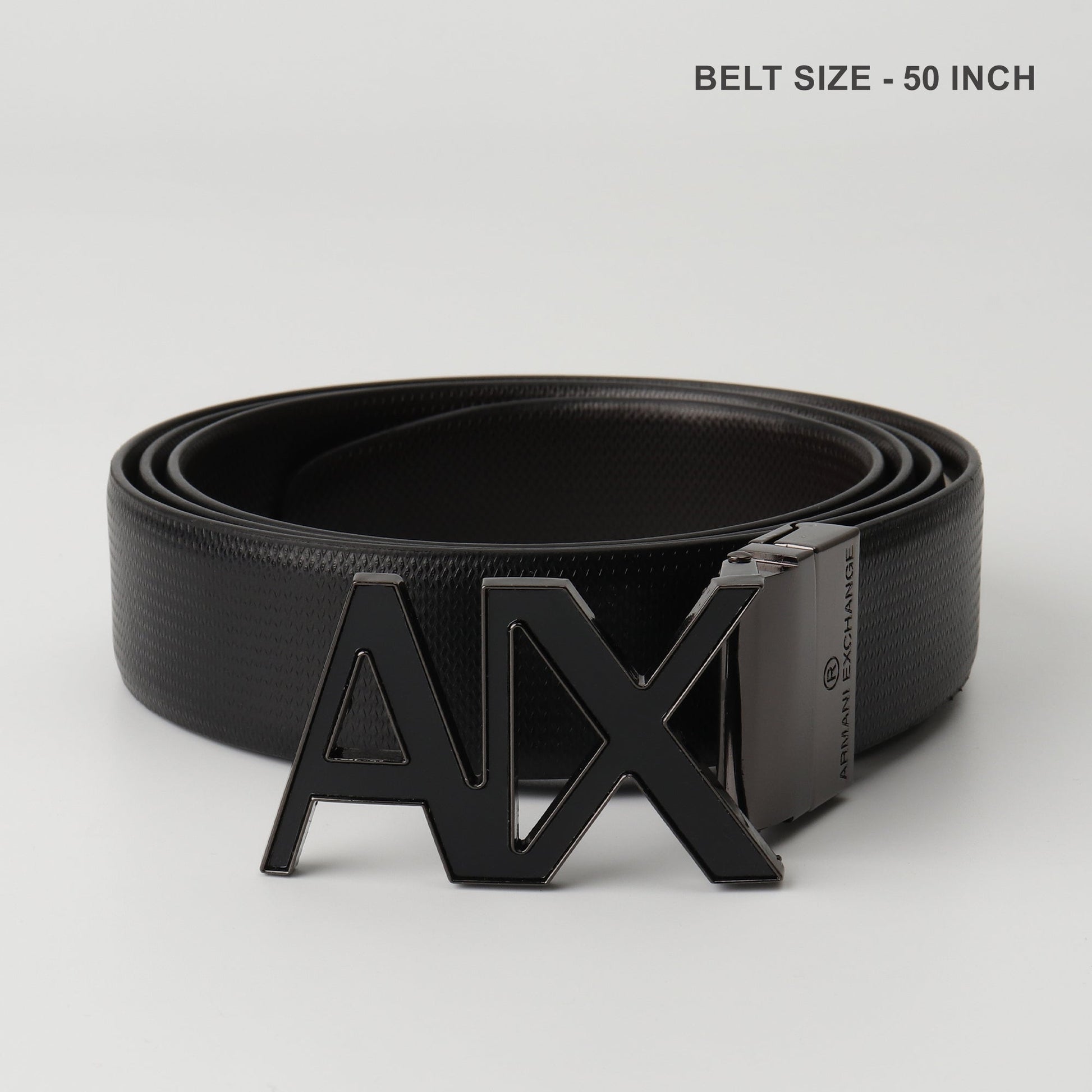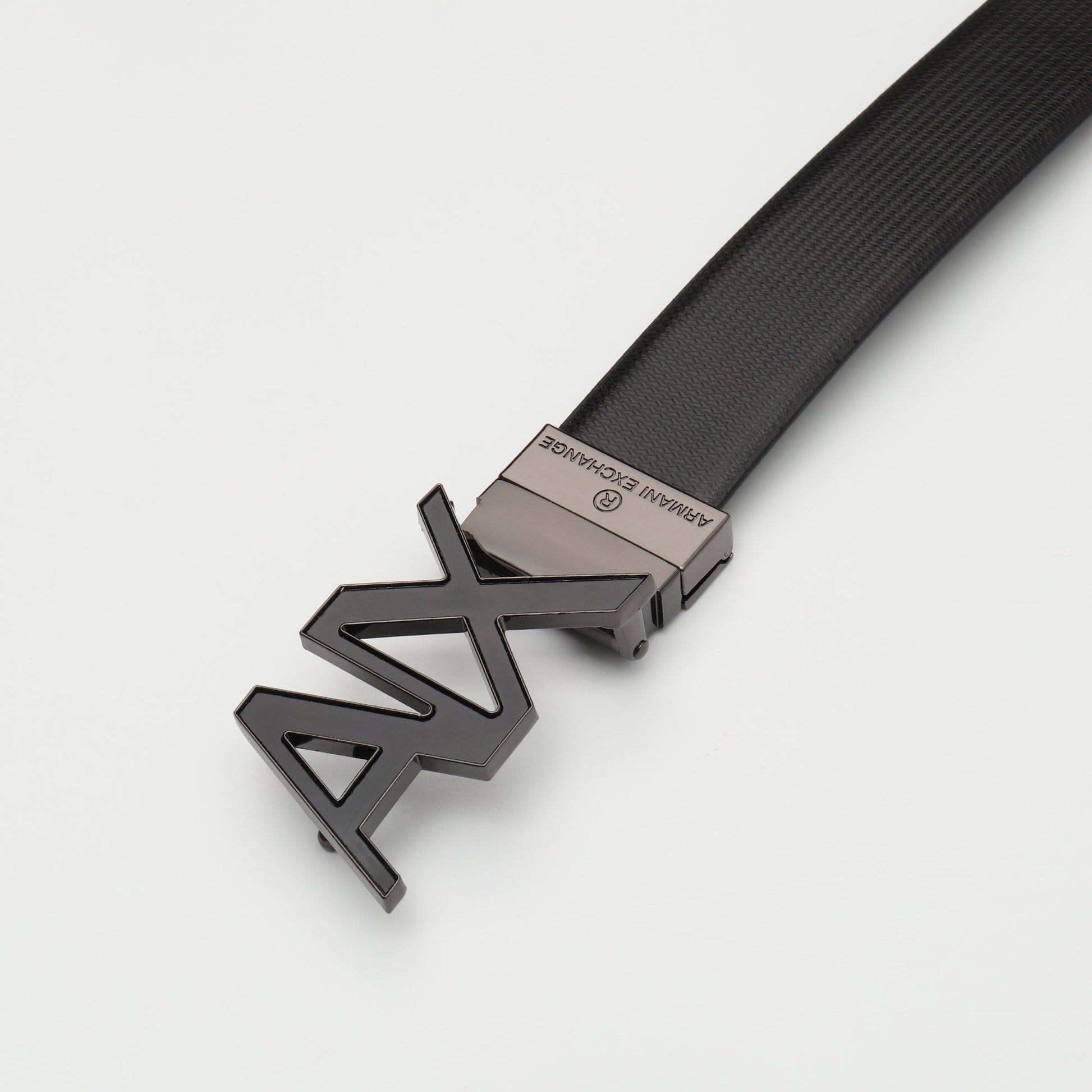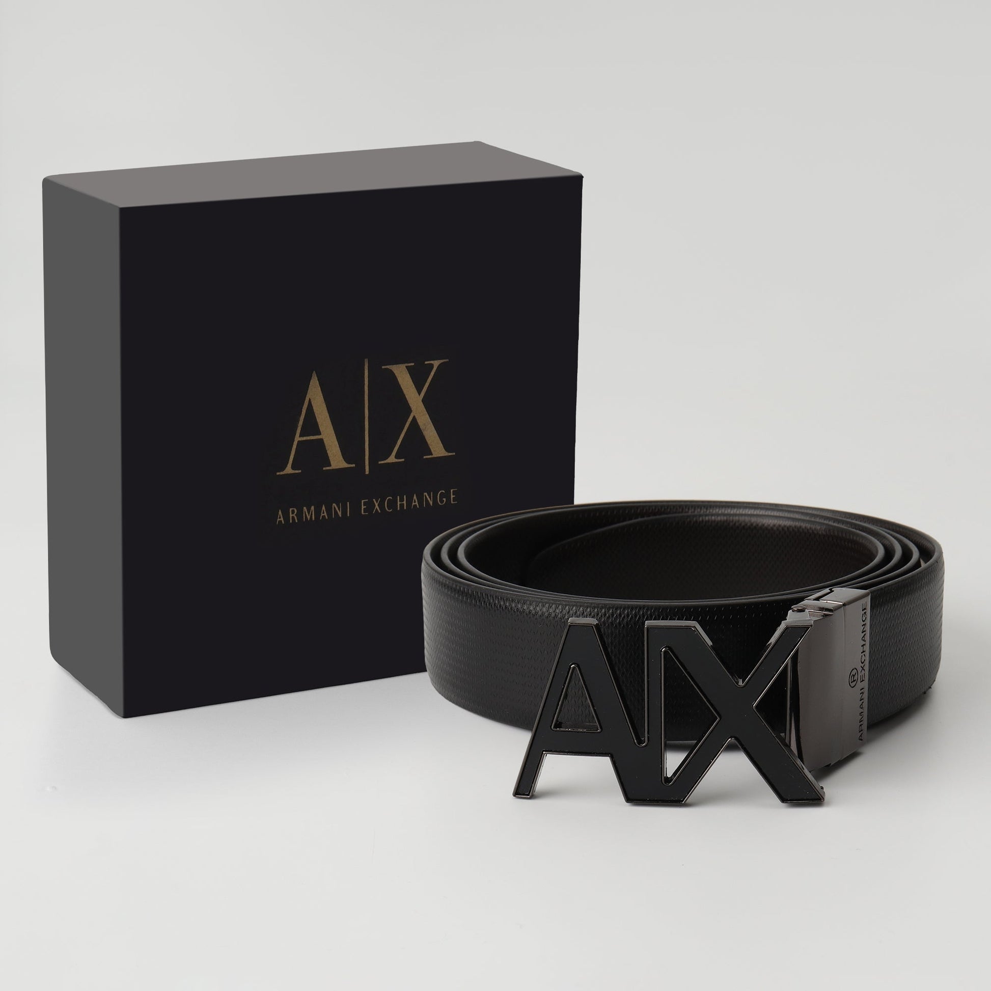 Bold meets modern in the Armani Exchange Onyx Emblem Belt. Featuring a deep textured black leather strap and a glossy black “A|X” buckle, this design delivers sharp sophistication with a monochromatic edge. A staple piece for trendsetters who favor clean, impactful looks.