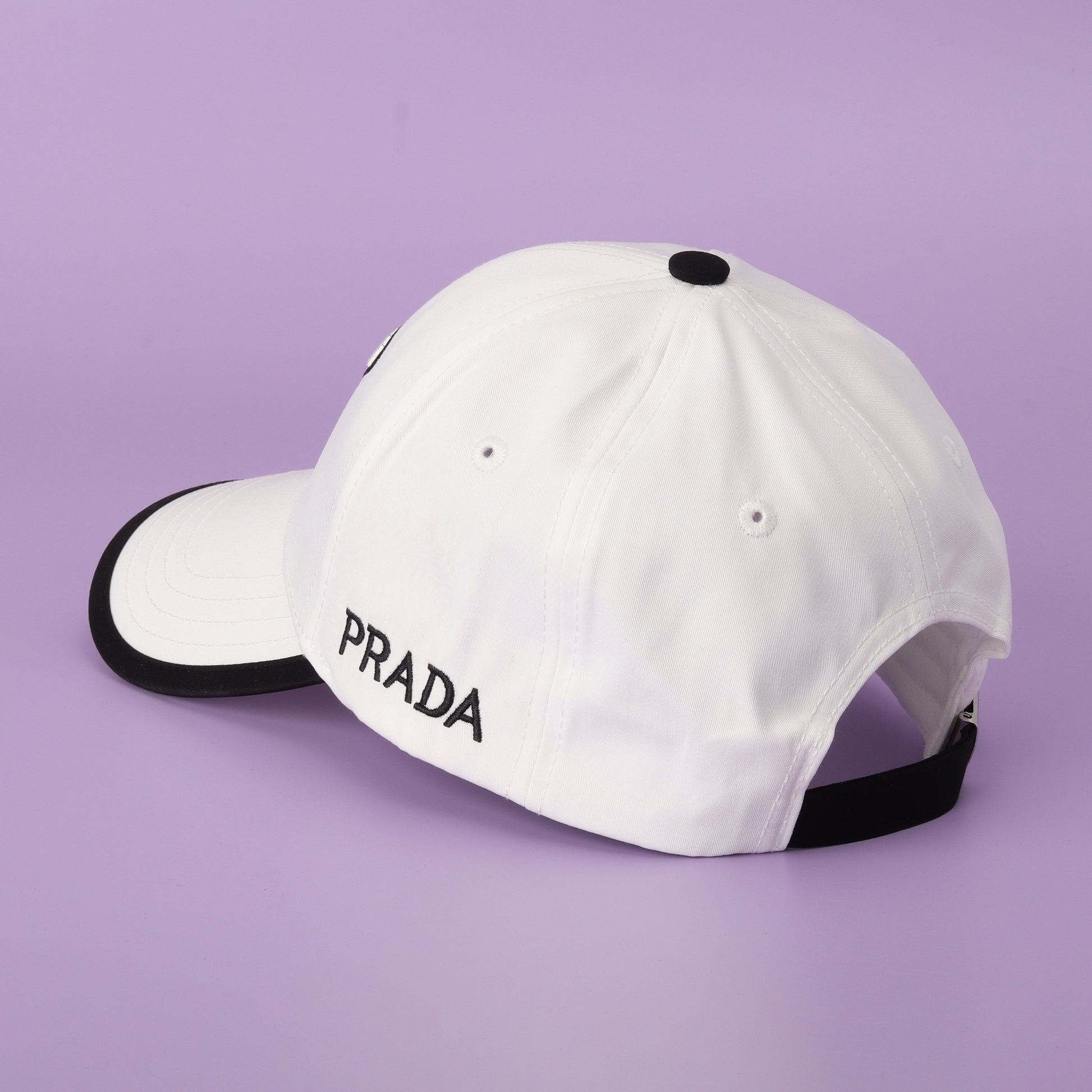 This Prada white baseball cap redefines minimal luxury with its crisp design. Featuring the iconic Prada triangle logo in bold black embroidery and a sharp black contrast trim, it’s a versatile accessory that balances streetwear style with timeless sophistication. Designed for both men and women, this cap is the perfect blend of casual comfort and high-fashion edge.