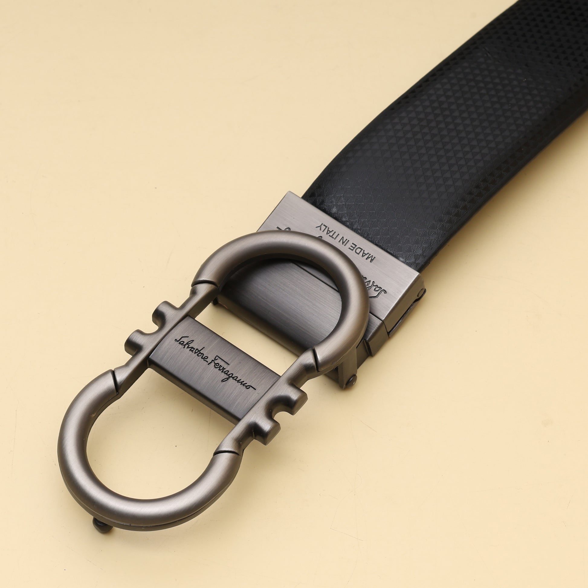 Pair it with tailored trousers and a crisp shirt when you want your outfit to feel sharp but not overdone. It also works beautifully with chinos and a knit polo for smart casual settings. Keep the rest of your look clean and neutral so the unique buckle shape becomes the quiet focal point.