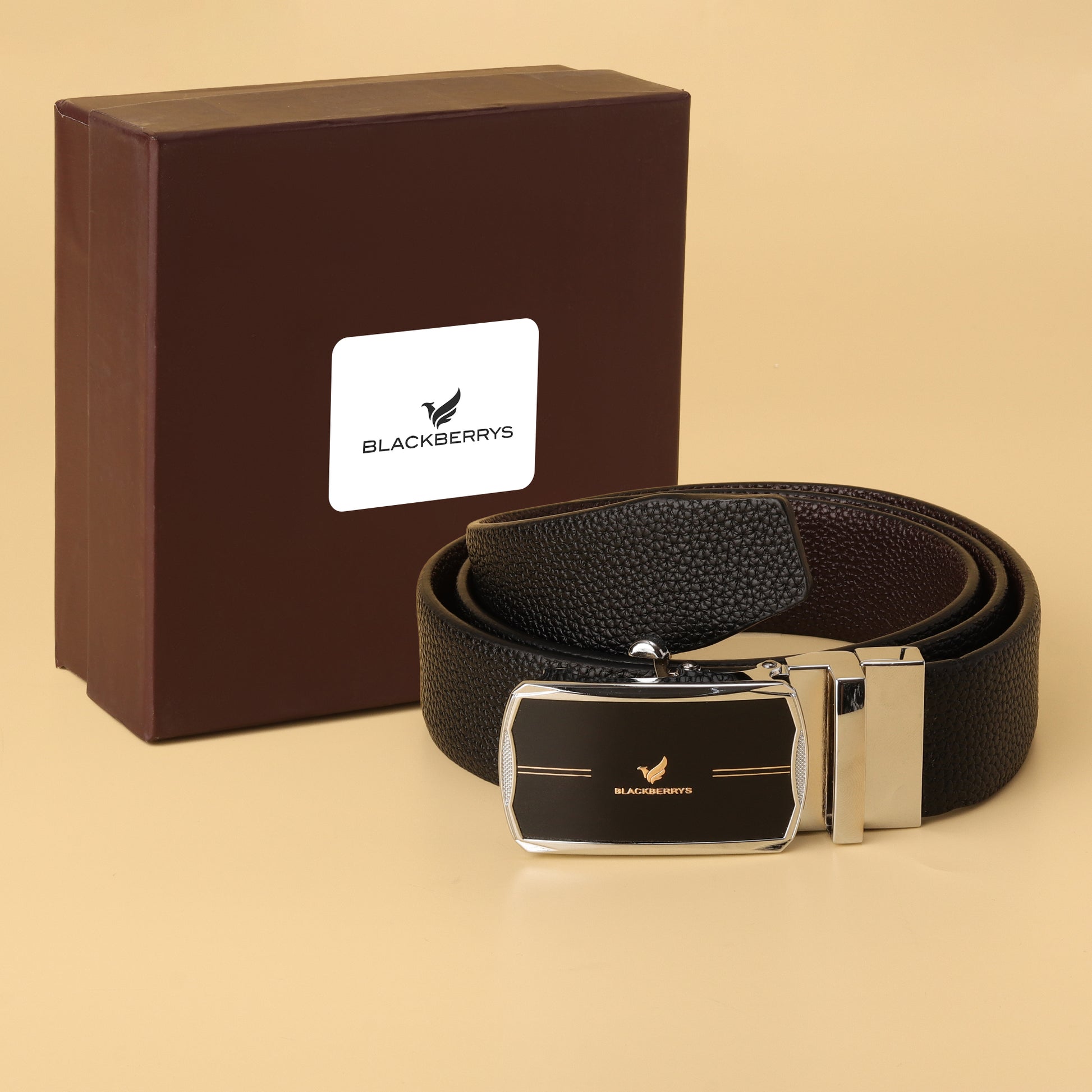 Crafted for the modern gentleman, the Blackberrys Signature Reversible Leather Belt combines versatility with luxury. Featuring a textured black and brown reversible strap and a sleek silver-tone automatic buckle with subtle branding, this belt is designed to elevate your wardrobe effortlessly. Durable, timeless, and refined—it’s a perfect addition to both workwear and evening ensembles.