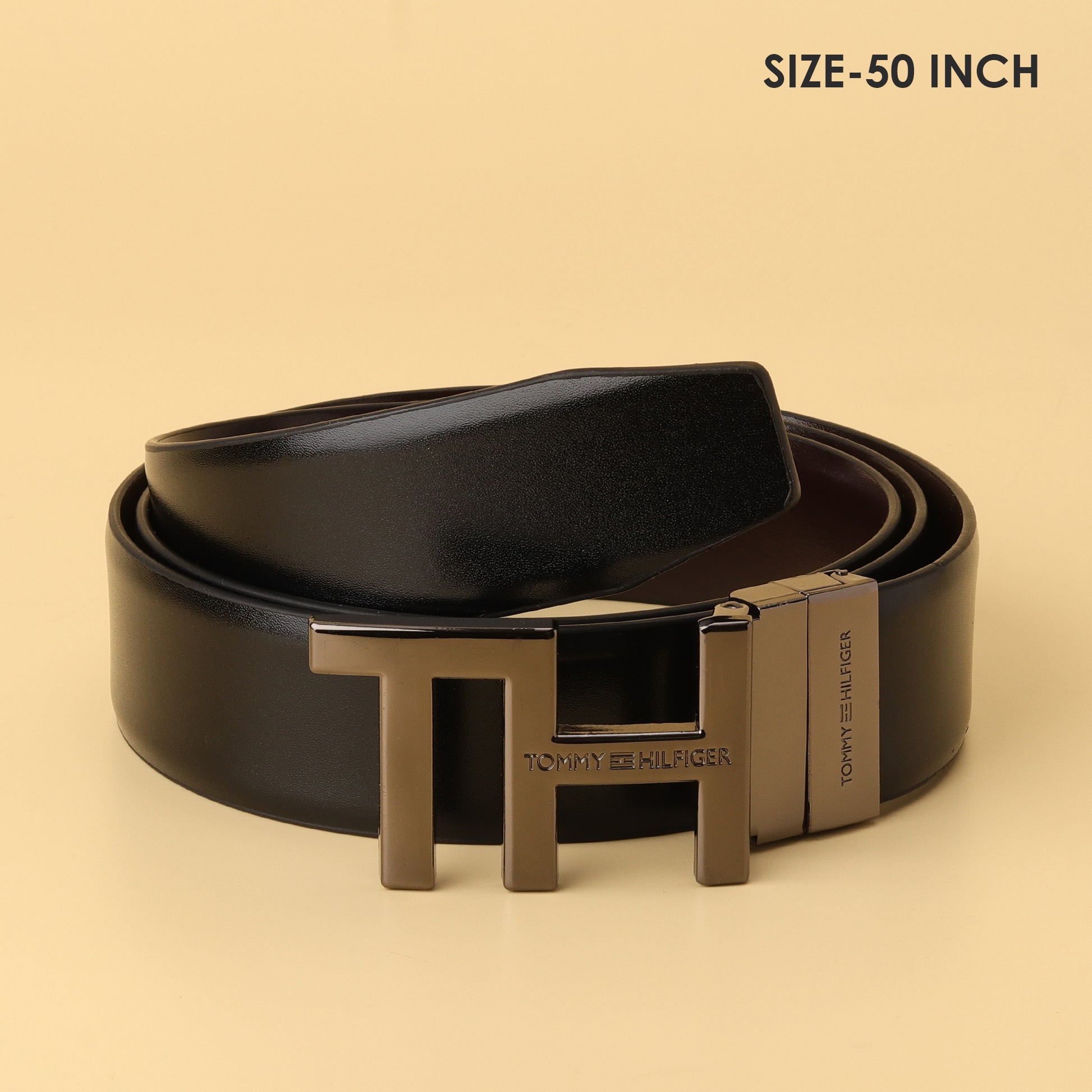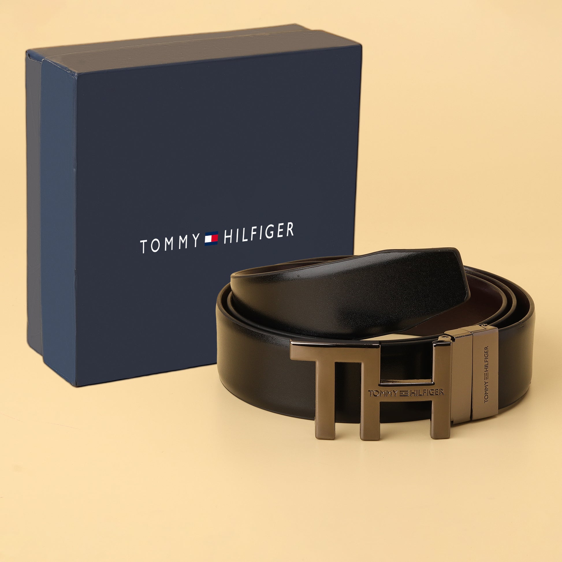 Make a bold statement with the Tommy Hilfiger Signature “TH” Belt. Featuring a sleek reversible strap in classic black and deep brown, it offers versatility for every look. The standout highlight is the bold “TH” monogram buckle in a brushed metallic finish, adding a modern edge to your wardrobe. Crafted for durability and everyday sophistication, this belt is where minimal design meets maximum impact.