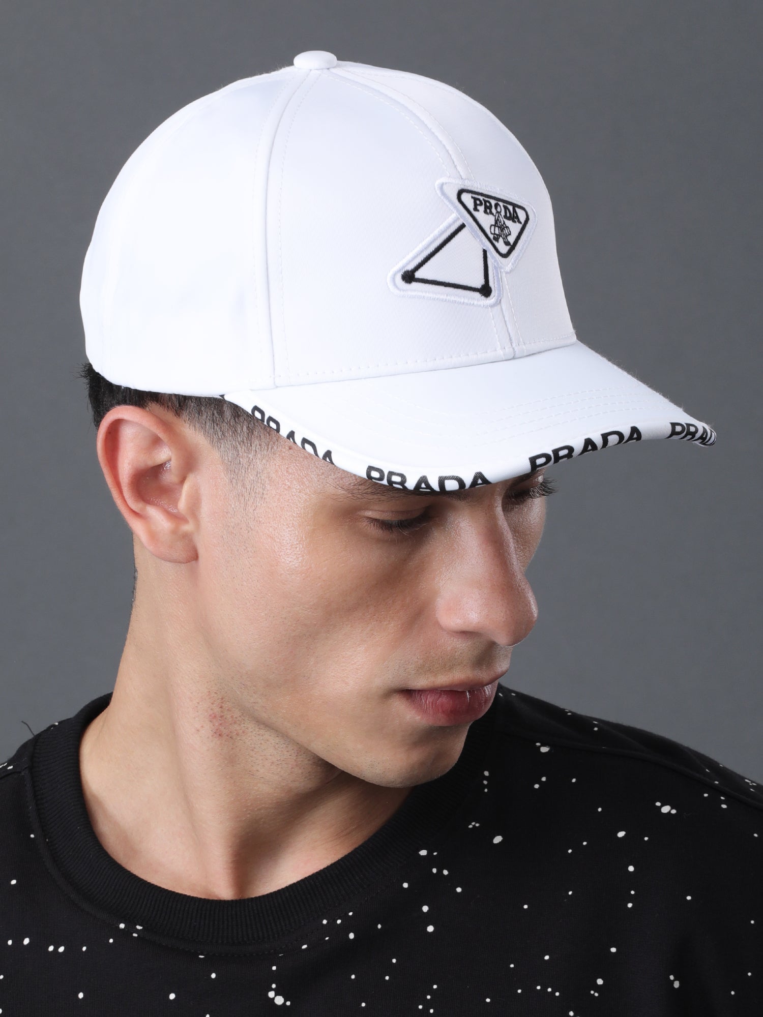 π Logo Branding on Brim β Bold PRADA print for extra flair.