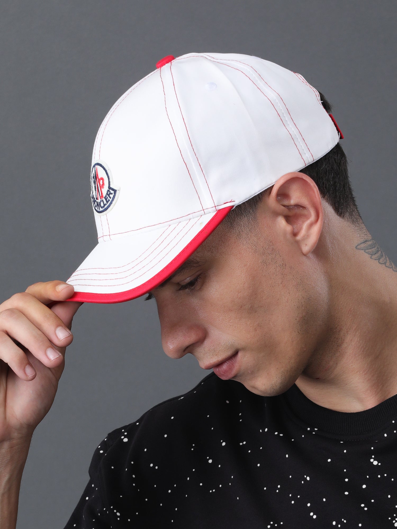 π§’π₯ Moncler White & Red Designer Cap β Bold Luxury, Street Cool Vibes β¨